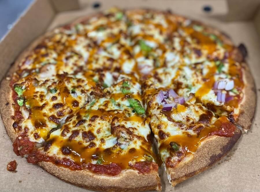 Tomato Sauce, Cheese, Pineapple, BBQ Chicken. (BBQ sauce optional)