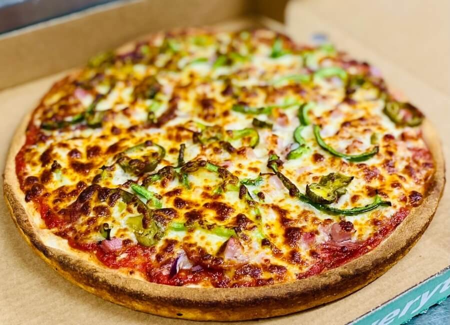 Tomato Sauce, Cheese, Bacon, Onion, Pepperoni, Capsicum, Spices, Jalapeno Pepper. Medium Spicy