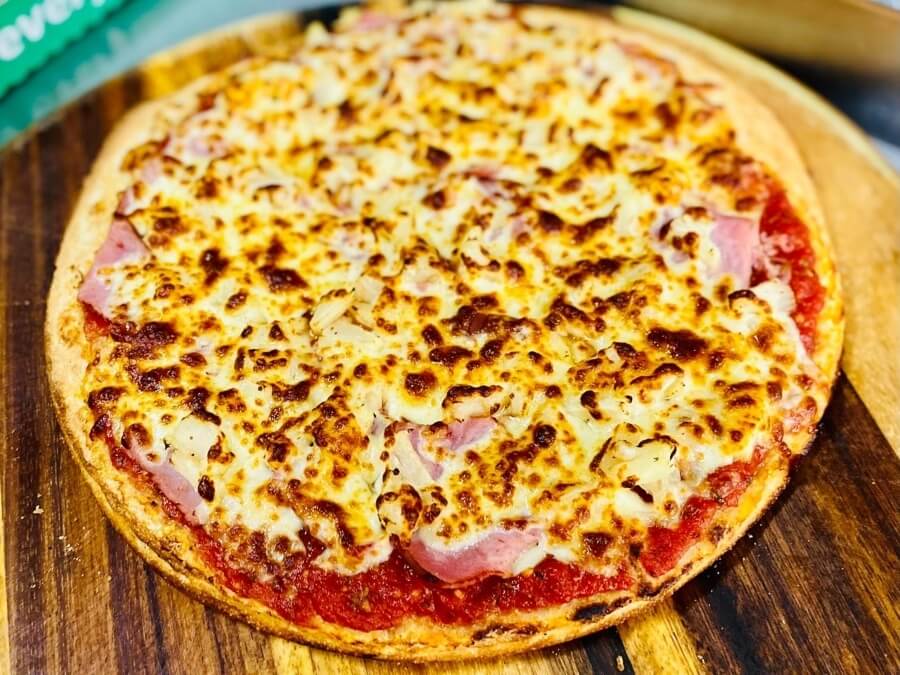 Tomato Sauce, Cheese, Ham, Pineapple.