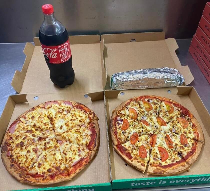 2 Large Traditional Pizzas + Garlic Bread + 1.25l Drink