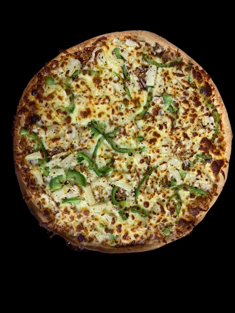 Tomato Sauce, Cheese, Capsicum, Onion, Mushroom, Pineapple, Oregano. Vegetarian