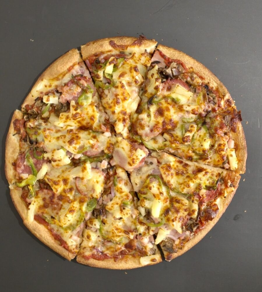 Tomato Sauce, Cheese, Ham, Pineapple, Mushroom, Capsicum, Pepperoni.
