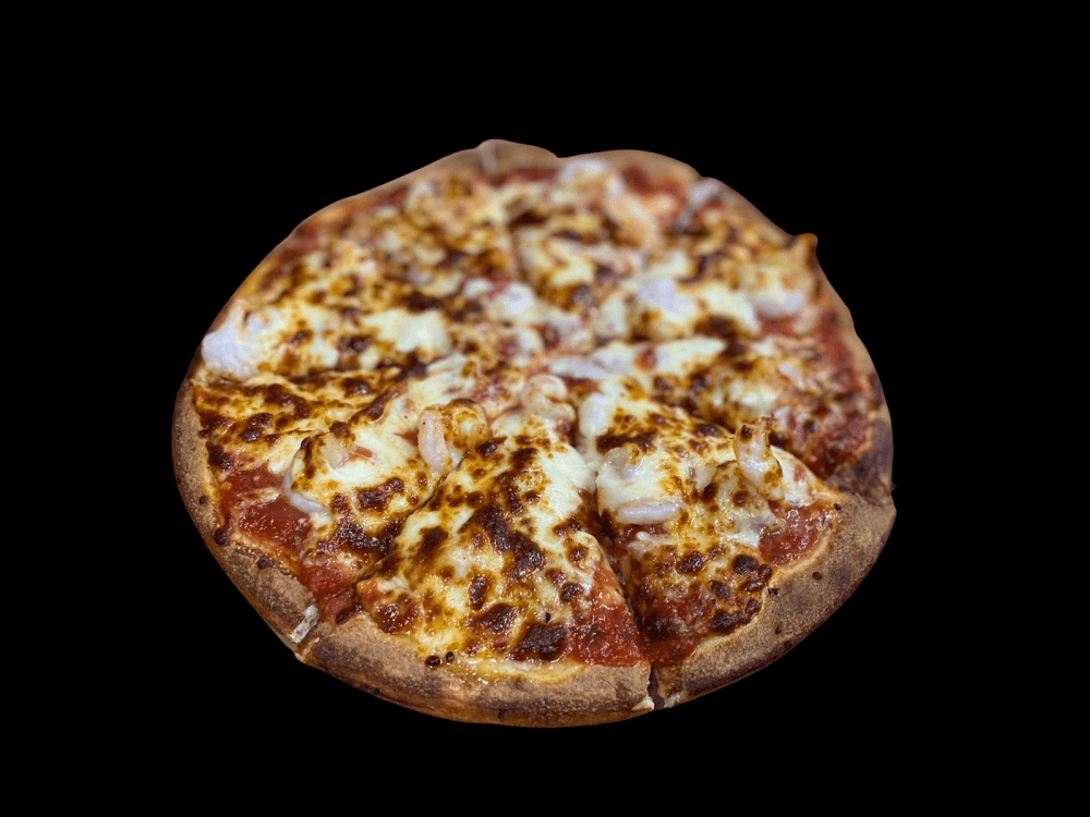Tomato Sauce, Cheese, Marinated Tiger Prawns, Bacon Rashers, Double Pineapple, Pepperoni.