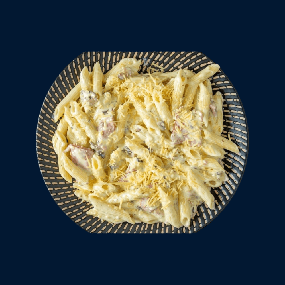 Diced bacon cooked in cream, egg, black pepper & mozzarella cheese